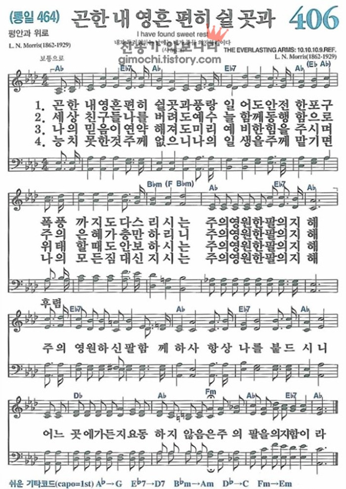 찬송가 찬송가 406장 곤한 내 영혼 편히 쉴 곳과 G F키 악보 네이버 블로그