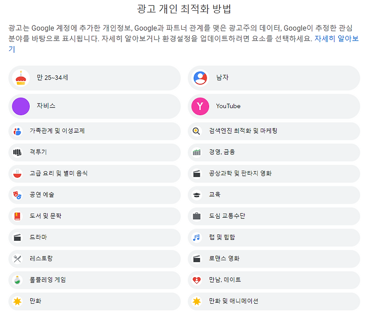 구글 광고의 개인 최적화 이렇게 확인하세요