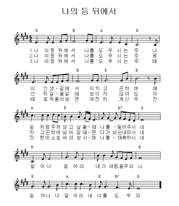 나의등뒤에서 일어나걸어라 악보 영상 가사 E코드