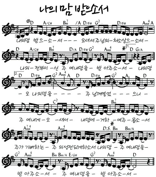Ccm 나의맘받으소서 피아노악보 멜로디악보 코드 가사 D코드찬양 네이버 블로그