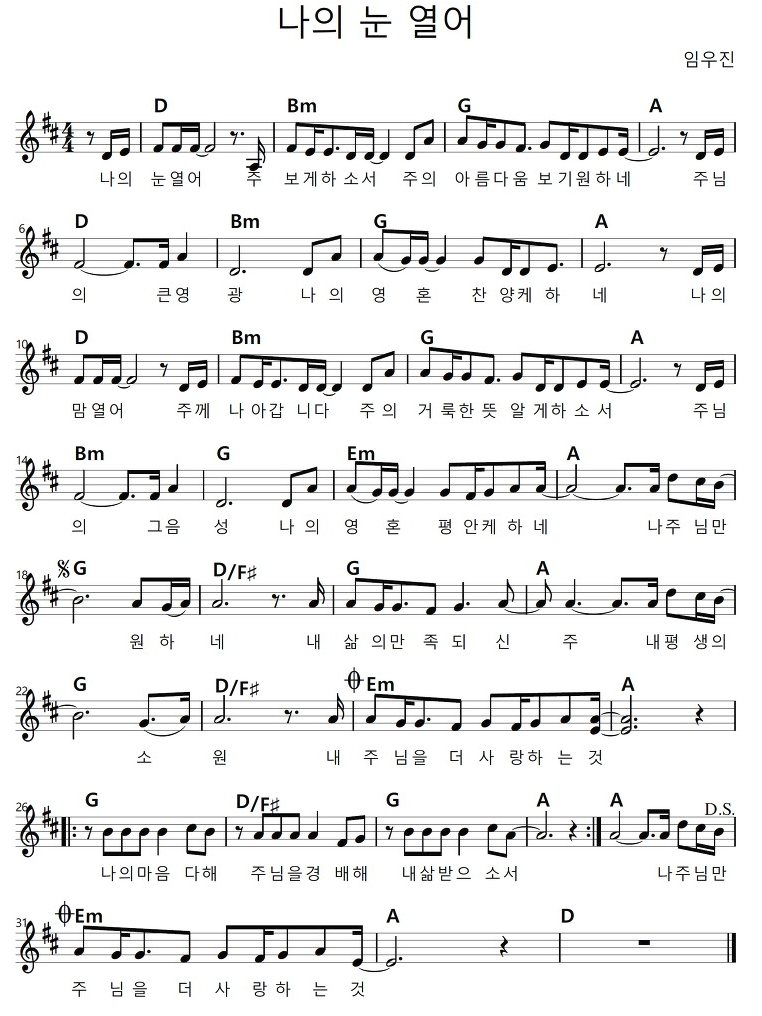 나의 눈 열어 주 보게 하소서 D코드 찬양 Ccm 악보 가사 Ppt