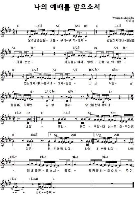 나의 예배를 받으소서 어노인팅 E코드 악보 영상 콘티 가사