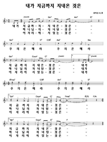 0121 지금까지 지내온 것 진리 김창귀 박지현 복음찬송가 악보 보기 곡 검색 복음찬송가