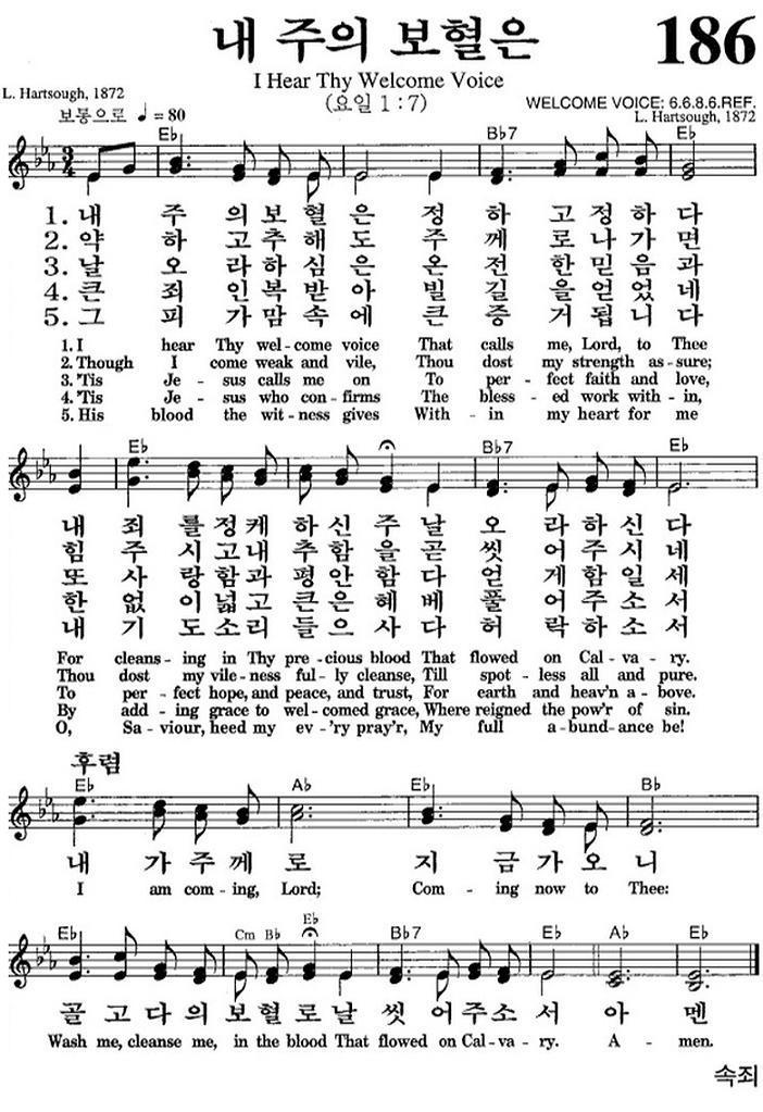 在 영어 찬송 186장 내 주의 보혈은 I Hear Thy Welcome Voice 在 영어찬송 의왕예본교회