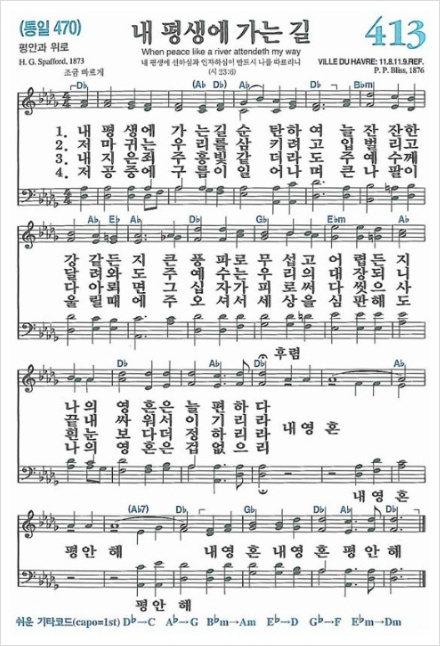 통합찬송가 한영 470장 내 평생에 가는 길 When Peace Like A River Attendeth My Way 새찬송가 413장 Nwc 무배경 Ppt악보 Praise Worship Service