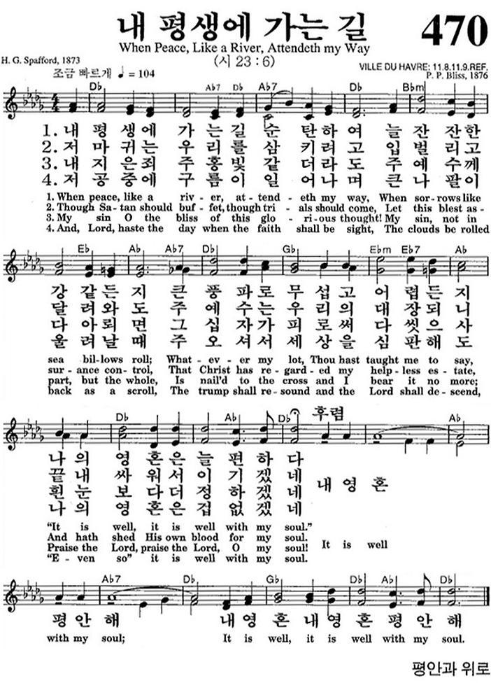 在 영어 찬송 470장 내 평생에 가는 길 When Peace Like A River Attendeth My Way 在 영어찬양악보 영생의 말씀