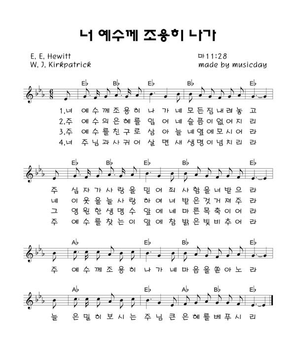 Musicday 너 예수께 조용히 나가 구 찬송가 큰글자악보