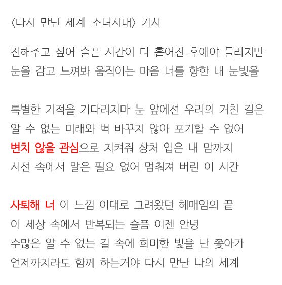 다시만난세계 가사 수능언어식 분석 Jpg 케이돌토크 카테고리