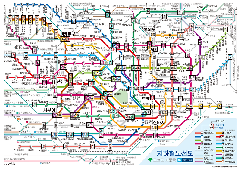일본 도쿄 지하철 노선도 한글 Pdf 고화질 보기 지하철 노선도 여행 일본 여행