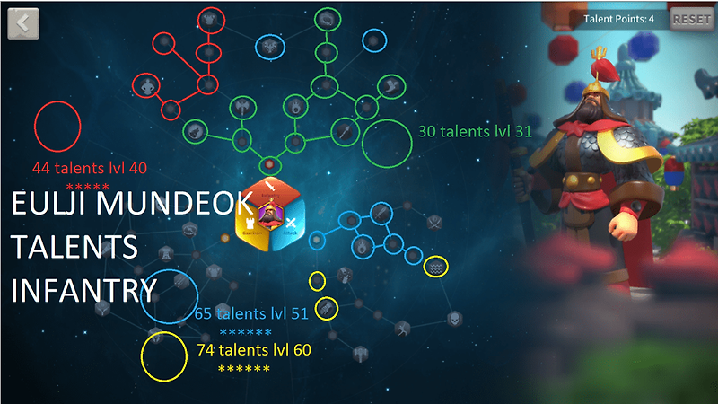라이즈 오브 킹덤즈 을지문덕 특성 공략