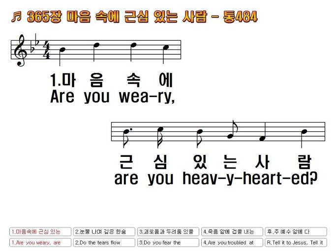 새찬송가 한영 365장 마음 속에 근심 있는 사람 Are You Weary 통합찬송가 484장 Nwc 무배경 Ppt악보