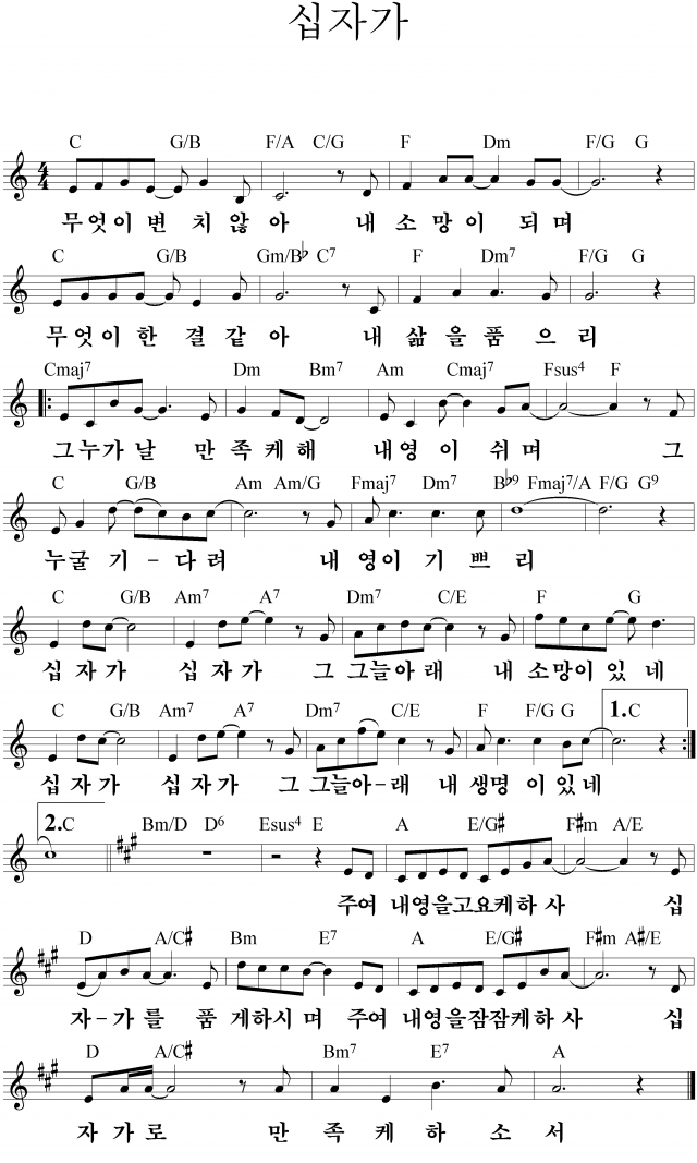 유다지파 십자가 무엇이 변치않아 악보 악보바다