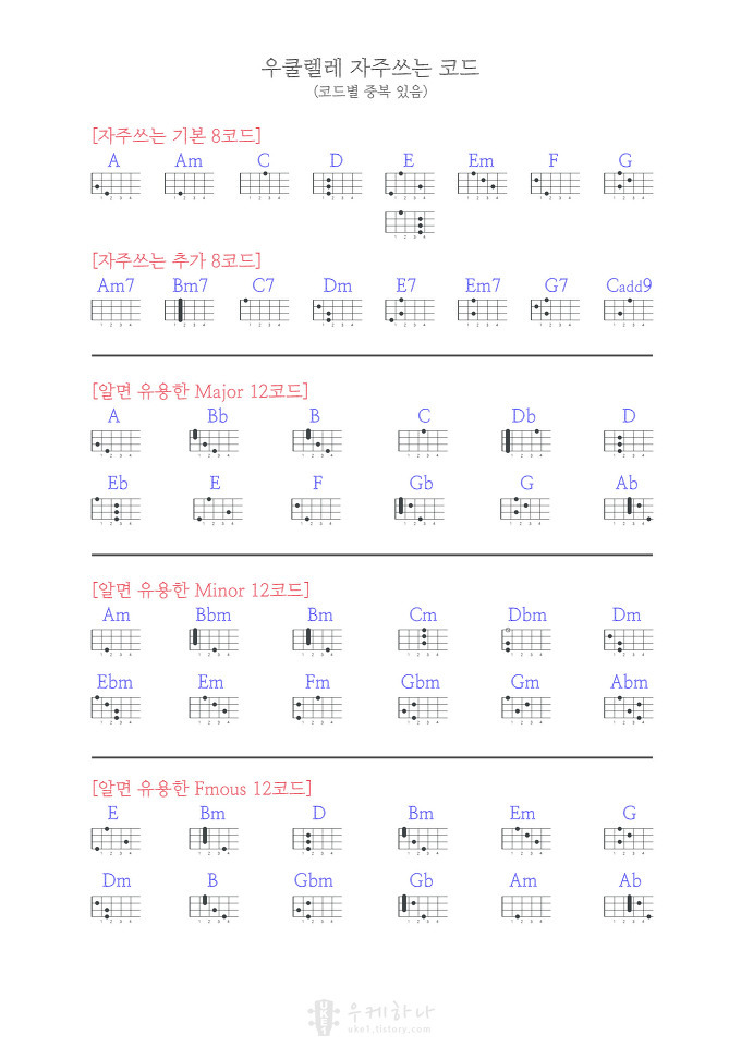 어썸기타 바람이 불어오는 곳 악보 코드 네이버 블로그 악보 코드 정리 우쿨렐레