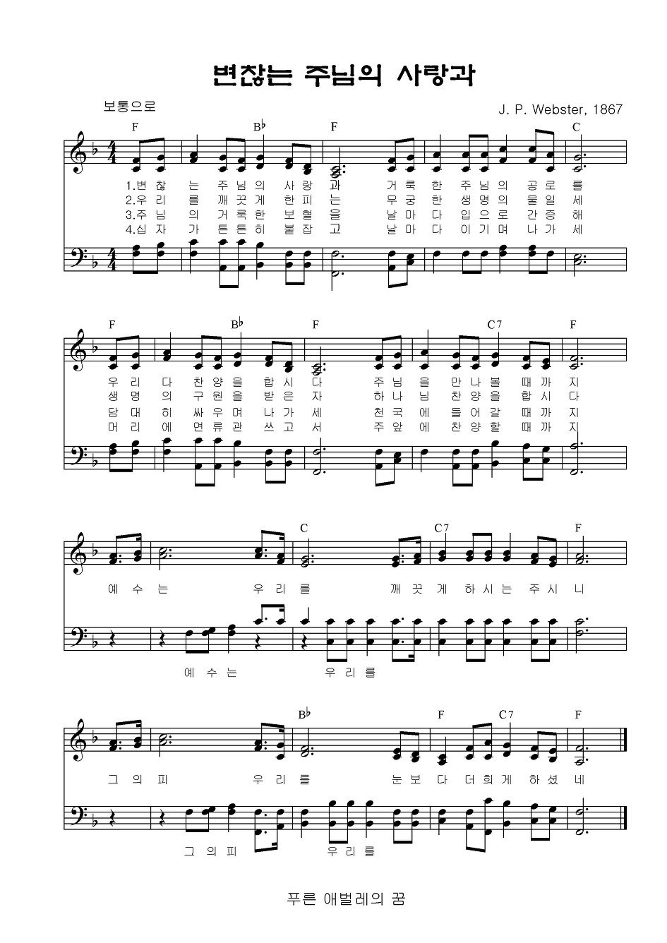 구찬송484 마음속에 근심있는 사람 f 악보 0 2020 03 30. 변찮는 주님의 사랑과 1 변찮는 주님의 사랑과 거룩한 보혈의 공로를 우리 다 찬양을 합시다 주님을 만나볼 때까지 후렴 예수는 우리를 깨끗게 하시는 주시니 그의 피 우리를 눈보다 더 희게 하셨네 2 우. 부산 개인앨범 제작 음원제작 발매 5시간 완성 제목. 270장 변찮는 주님의 사랑과 214 찬양듣기 악보 2020년 5월.