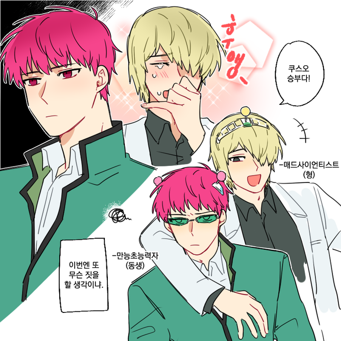 사이키 쿠스오의 재난 에 나오는 사이키 형제도 제가 정말 좋아하기 때문에 언젠가 재밌는 만화들을 발견하 만화 웃긴 애니메이션