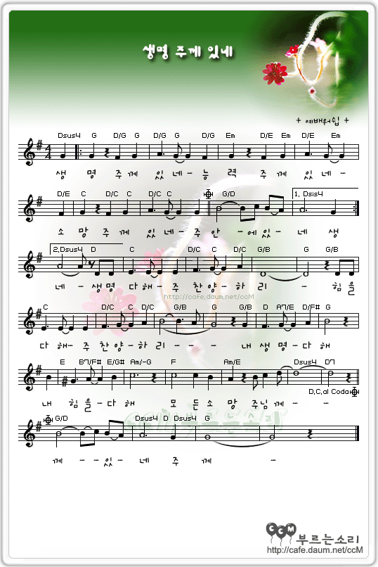 생명 주께 있네 Ccm 찬양 악보 가사 통기타 가스펠 네이버 블로그