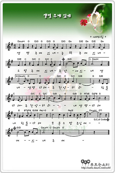 생명주께있네 1단 악보 G Ccm반주법 양손반주 코드반주 칼립소