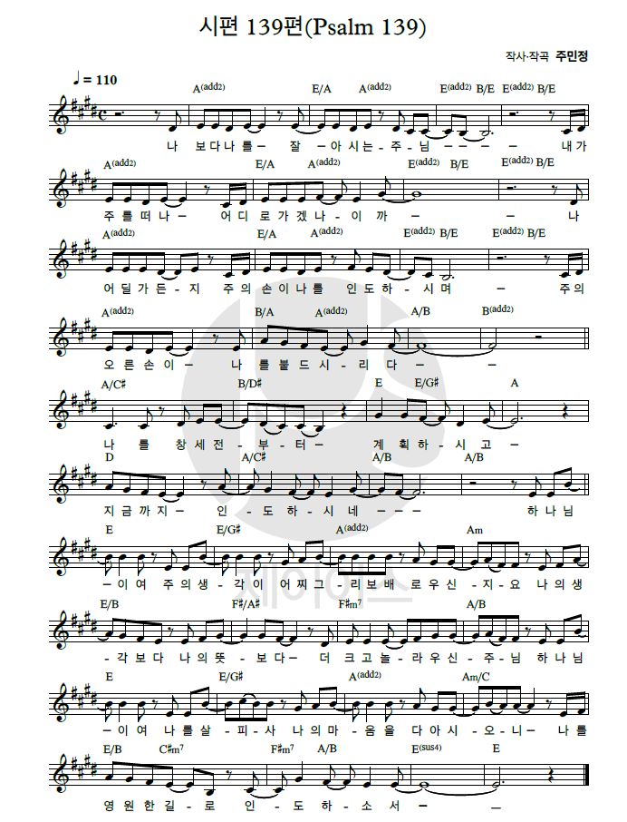 악보 게시판 주민정 제이어스 시편 139편 4부 합창 악보 By 윤창호