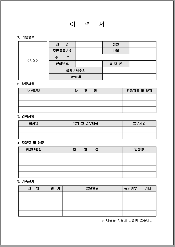 무료 이력서양식 3종 다운로드 네이버 블로그