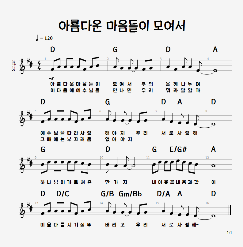 아름다운 마음들이 모여서 Lyrics And Music By 찬양 동요 율동 Arranged By 1ove Conductor
