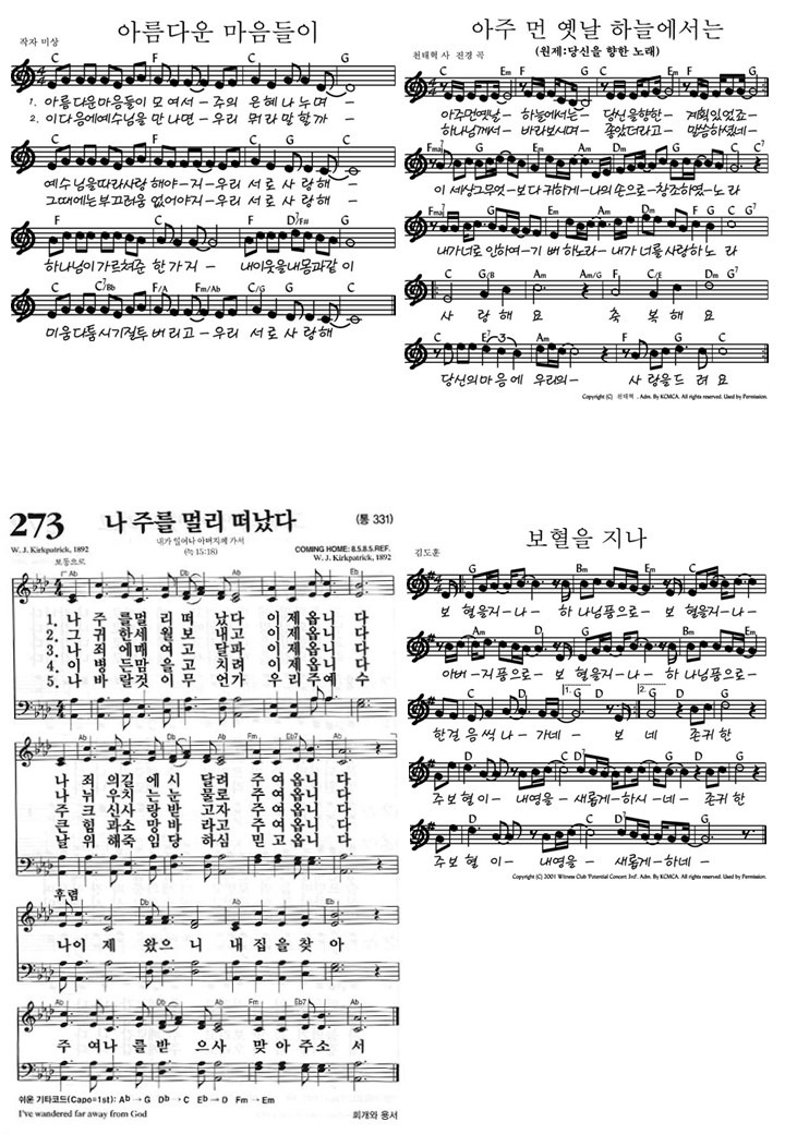 0047 아름다운 마음들이 모여서 복된소망 복음찬송가 악보 보기 곡 검색 복음찬송가