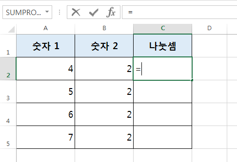 엑셀 나누기 더하기 빼기 곱하기 사칙연산 함수와 나머지 함수 사용하는 방법