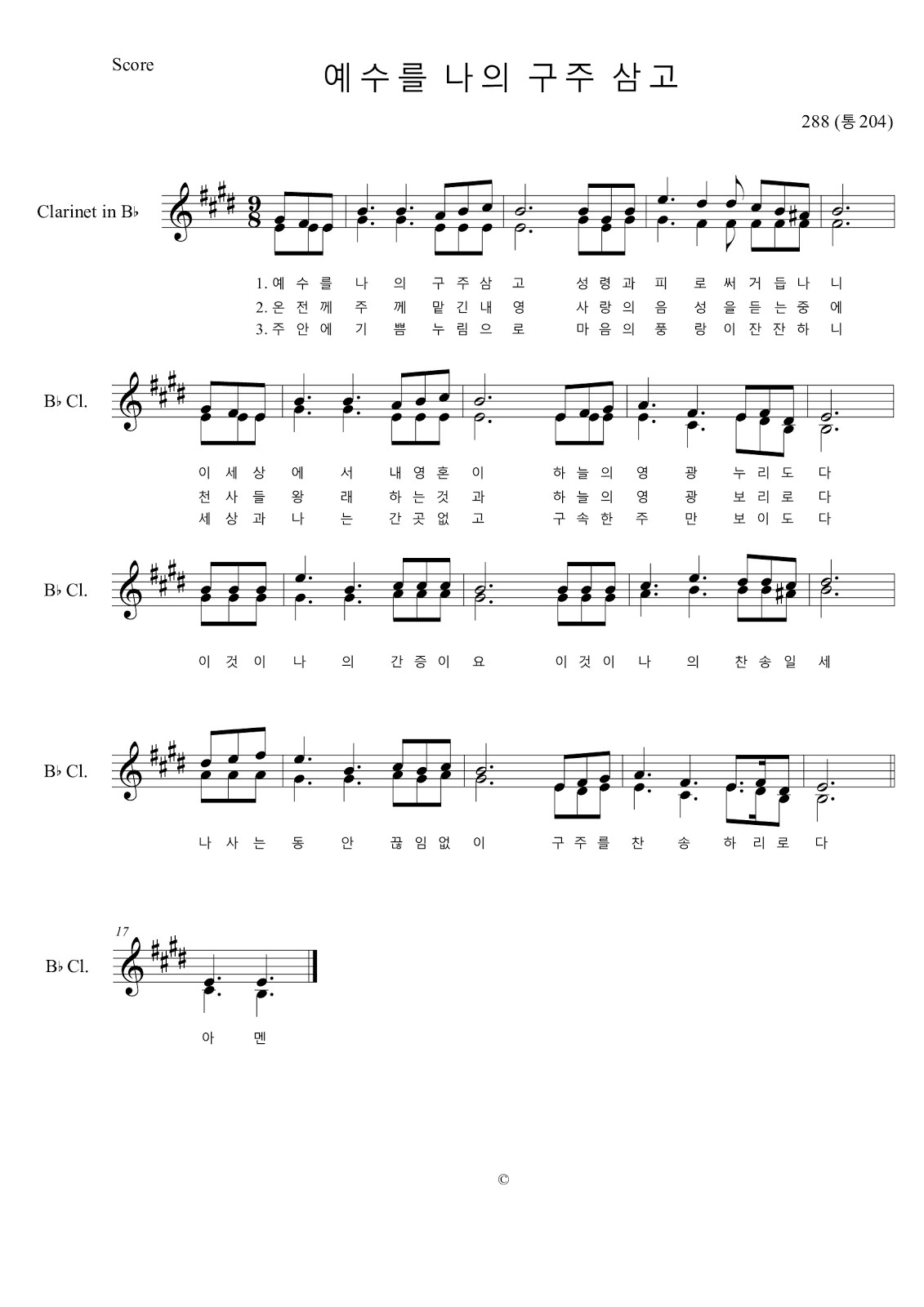 Calling 288 통 204 예수를 나의 구주 삼고 클라리넷 악보