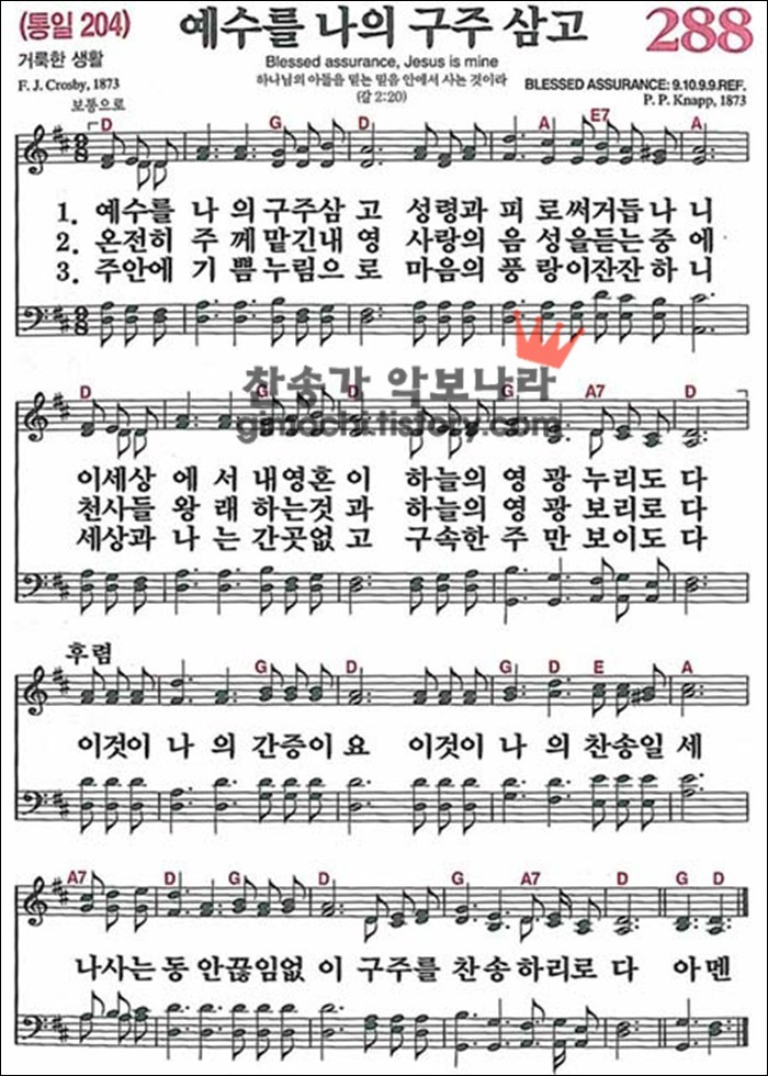 새찬송가 한영 288장 예수를 나의 구주삼고 Blessed Assurance Jesus Is Mine 통합찬송가 204장 Nwc 무배경 Ppt악보 Praise Worship Service