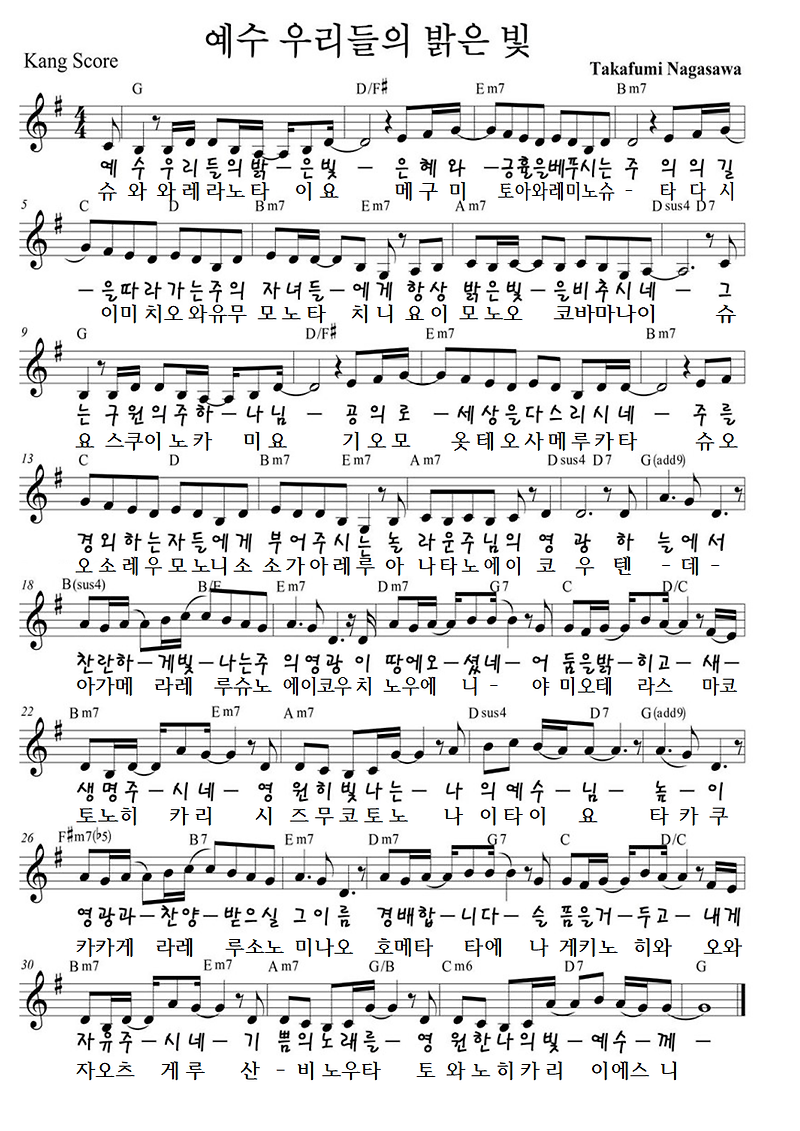 단선 예수 우리들의 밝은 빛 악보 어노인팅 네이버 블로그