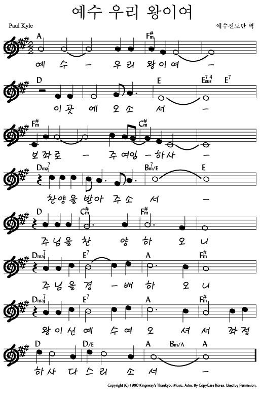 예수 우리 왕이여 영어가사 악보 네이버 블로그