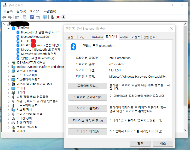 윈도우10 업데이트 후 블루투스 삭제시 복구방법 인텔 블루투스 드라이버 설치 네이버 블로그