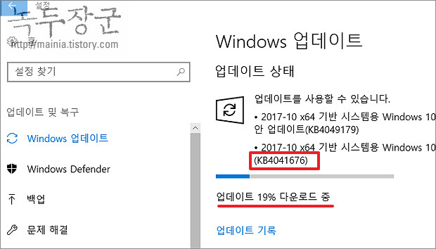 윈도우10 업데이트 도중 멈춰서 진행이 안될 때 별도로 다운받아 설치하는 방법
