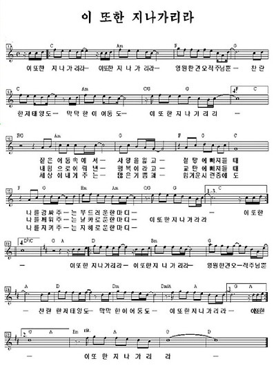 이 또한 지나가리라 Soon It Shall Also Come To Pass 가사 악보 듣기