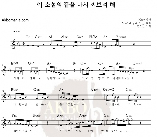 한동근 이 소설의 끝을 다시 써보려 해 악보 다운로드 가능 멜로디 가사 코드 네이버 블로그