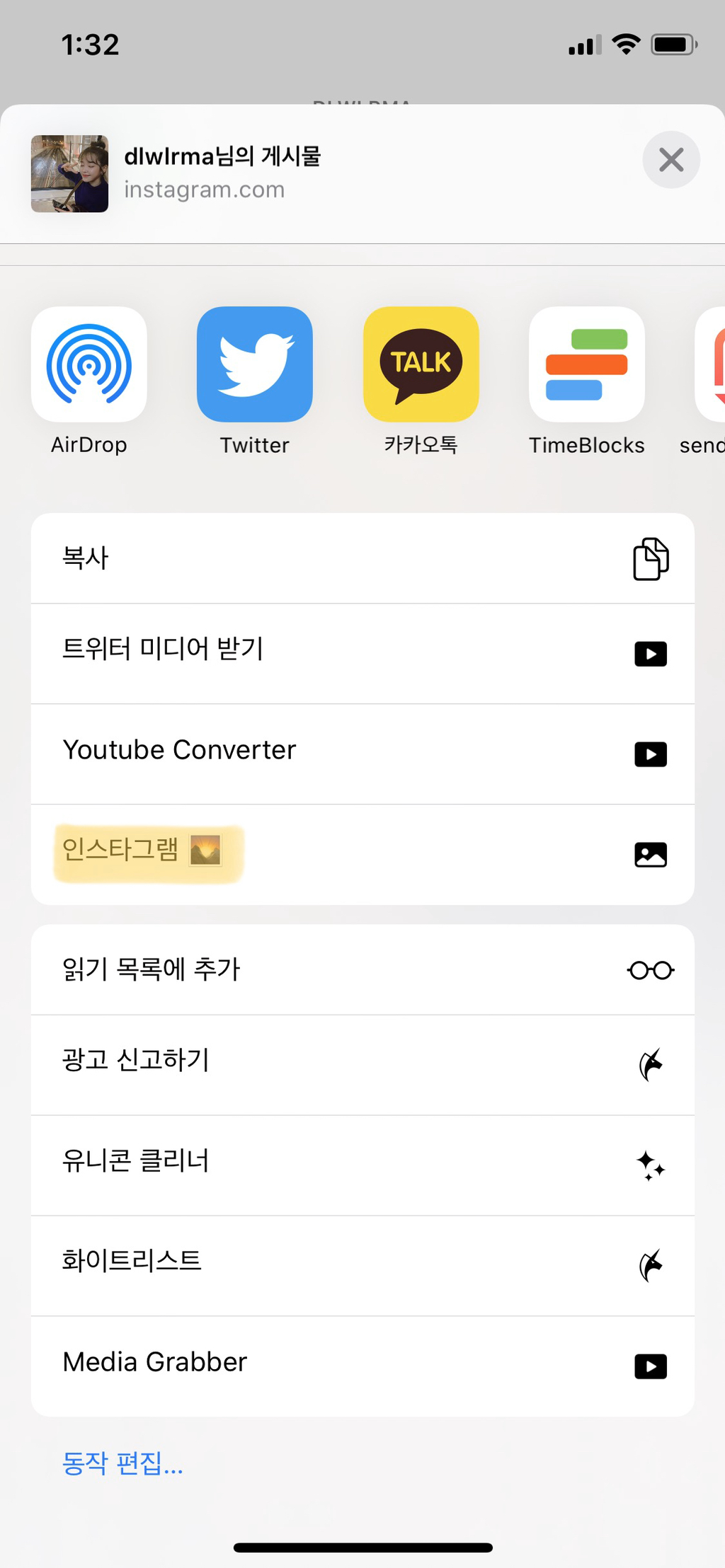 아이폰 인스타 인스타그램 사진 동영상 저장 단축어 오류 해결 방법