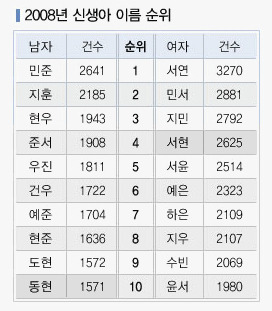 1945 2008 남자이름순위 여자이름순위 네이버 블로그