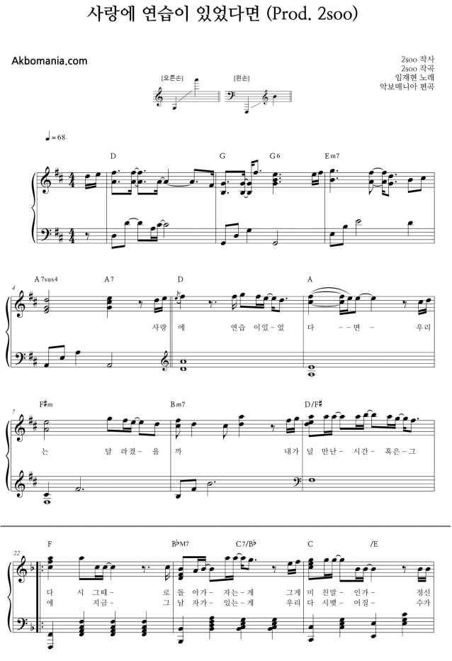 임재현 사랑에 연습이 있었다면 작사 2soo 작곡 2soo 편곡 2soo 사랑에 연습이 있었다면 우리는 달라졌을까 내가 널 만난 시간 혹은 그 장소 상황이 달랐었다면 우린 맺어졌을까 하필 넌 왜 내가 그렇게 철없던 시절에 나타나서 그렇게 예뻤니 너처럼 좋은여자가 왜 날 만나서 그런 과분한 사랑 내게. 우리 다시 그때로. 임재현 사랑에 연습이 있었다면 앨범 소개 작곡가 문성욱과 crush 웃으며 두개의 음원을 내며 잔잔한 반향을 일으켰던 보컬 임재현의 첫 개인앨범이 발매 됐다. 내가 널 만난 시간 혹은 그 장소.