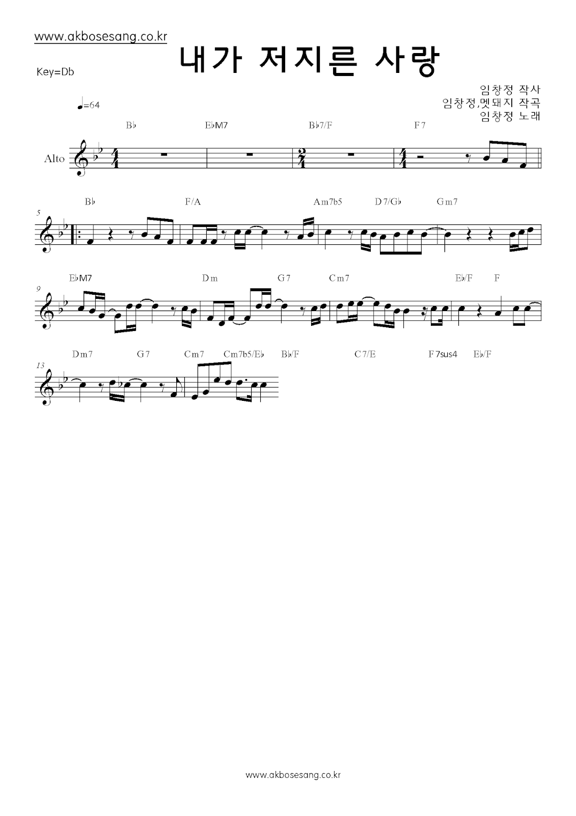 악보 게시판 임창정 내가 저지른 사랑 By 낮사람