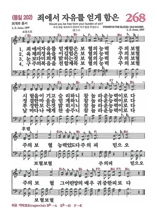 새찬송가 268장 악보 죄에서 자유를 얻게함은 통일찬송가 202장 보혈 찬송가의 비하인드 스토리