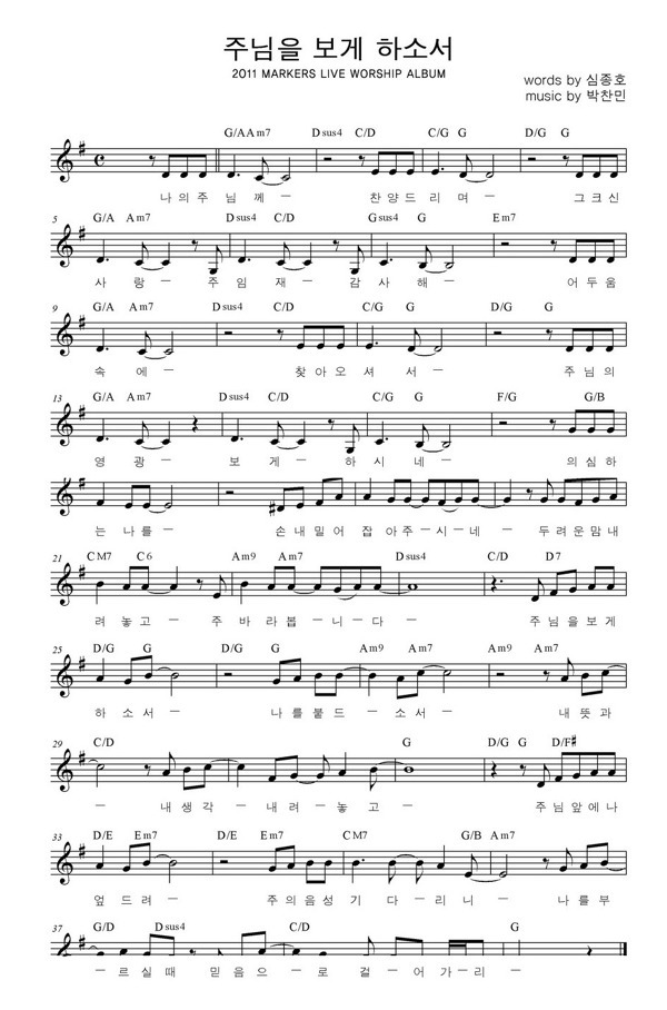 Musicday 주님을 보게 하소서 나의 주님께 찬양 마커스라이브워십2011 큰글자 악보