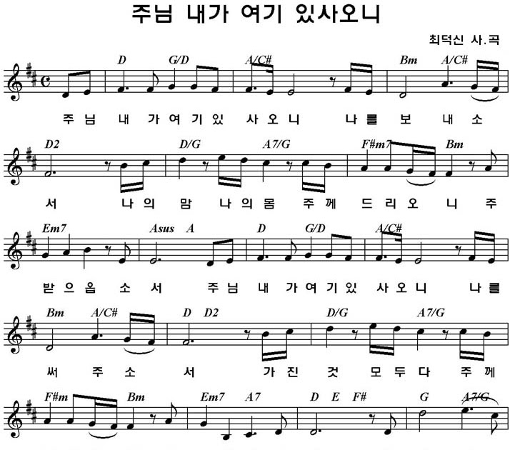 주님 내가 여기 있사오니 나를 받으옵소서 영어 가사 악보