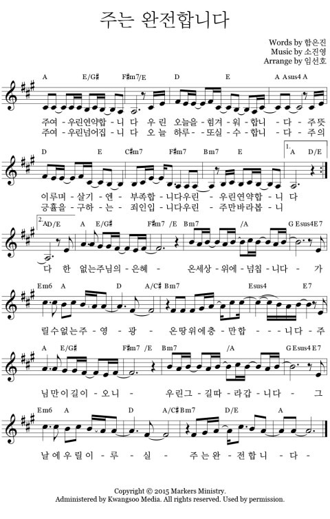 마커스 주는 완전합니다 가사 악보有 네이버 블로그