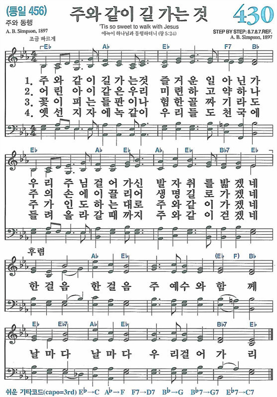 새찬송가 한영 430장 주와 같이 길 가는것 Tis So Sweet To Walk With Jesus 통합찬송가 456장 Nwc 무배경 Ppt악보 Praise Worship Service
