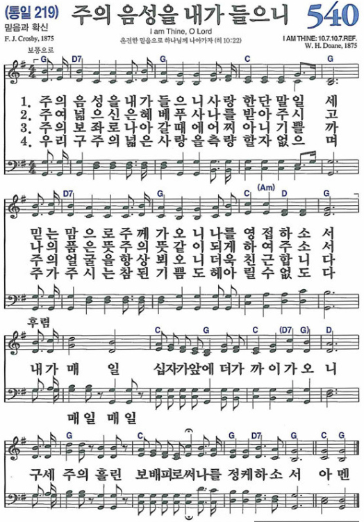주의 음성을 내가 들으니 G코드 악보 가사 Worship