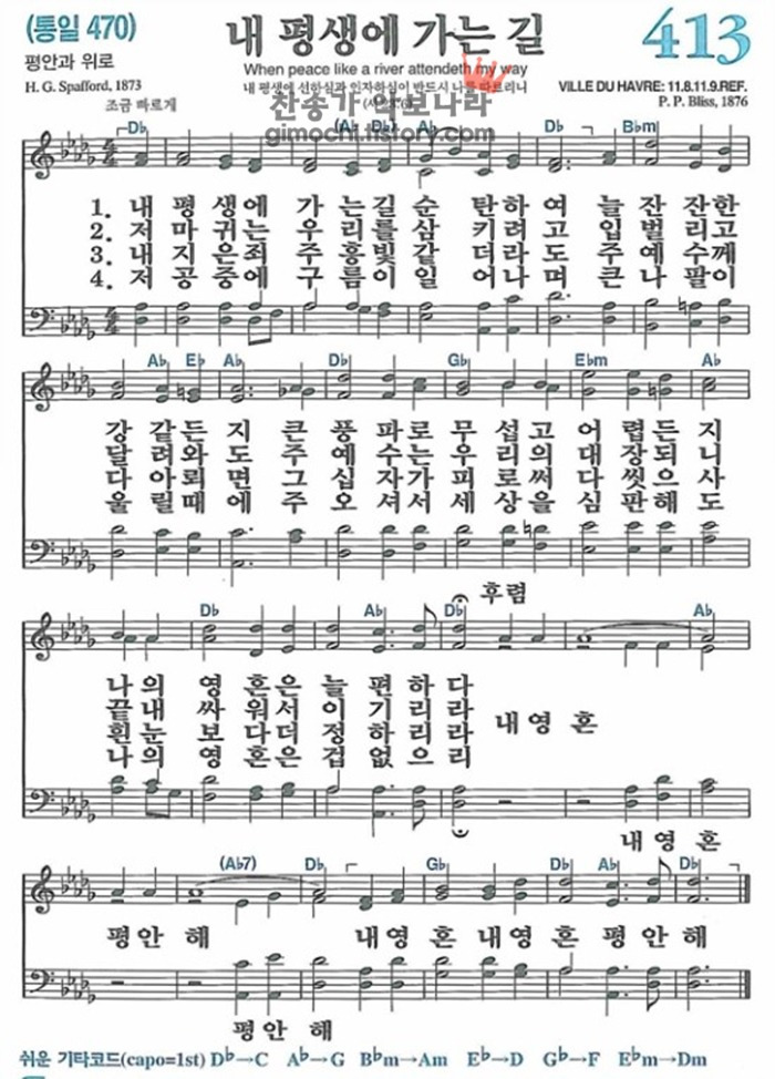 내 평생에 가는 길 찬송가 470장 새찬송가 413장 It Is Well C