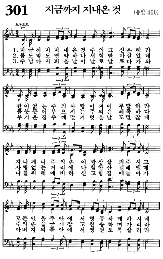 찬송가 새찬송가 301장 지금까지 지내온 것 Eb키 D키 악보 네이버 블로그