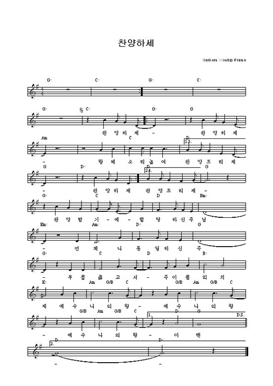 Ccm 악보전문 악보엘 찬양의 제사 드리며