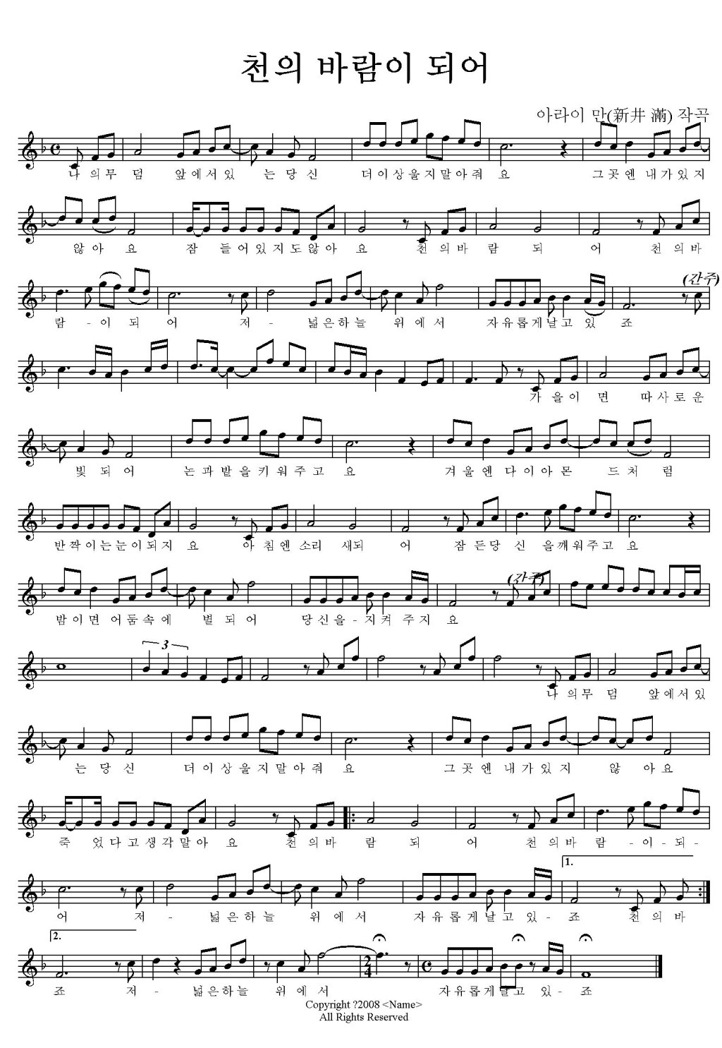 피아노 악보 천개의 바람이 되어 임형주 쉬운악보 영상 계이름 네이버 블로그
