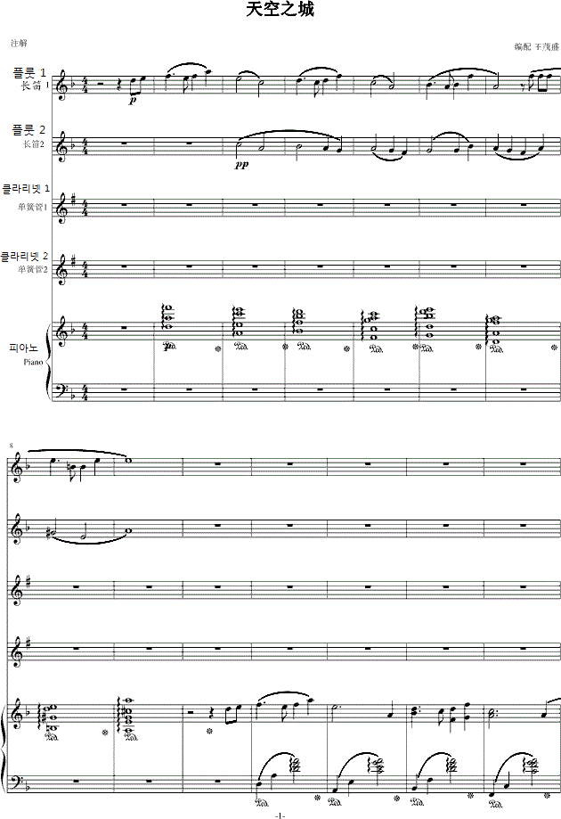 플룻 클라리넷 피아노 악보 천공의 성 라퓨타 Castle In The Sky 플룻 클라리넷악보 바이올린 첼로 플룻 통기타 클라리넷 피아노 뮤즈아카데미아