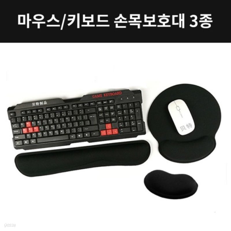 갓샵 올블랙 마우스 키보드 손목보호대 3종 손목받침대 손목보호마우스패드 Yes24